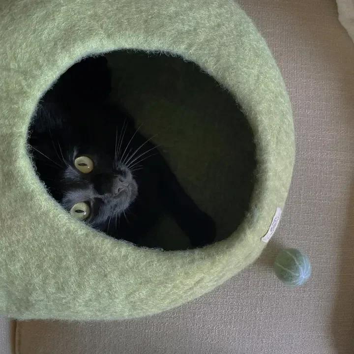 🐱💚 Weet je wat je in huis haalt? Een supergezond duurzaam schapenwol-vilt kattenmandje !💫 100% natuurlijk, handgemaakt met liefde en vakmanschap in Nepal.